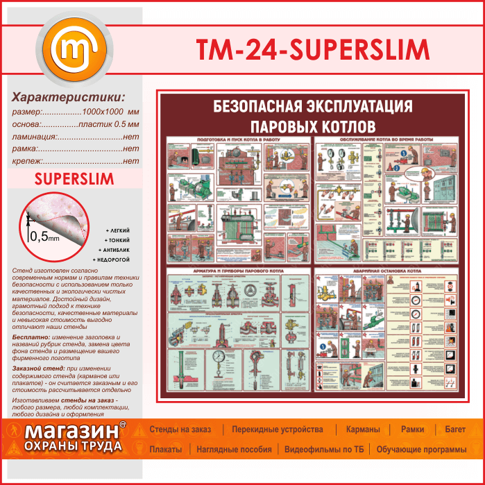 Стенд «Безопасная эксплуатация паровых котлов» (TM-24-SUPERSLIM) в Нижнекамске купить