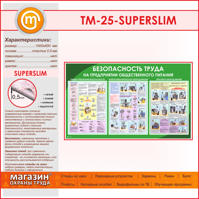 Стенд «Безопасность труда на предприятиях общественного питания» (TM-25-SUPERSLIM) в Нижнекамске купить