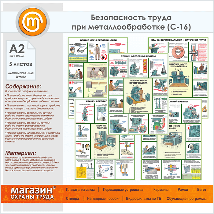 Плакат «Безопасность работ на металлообрабатывающих станках» (С-16, ламинированная бумага, А2, 5 листов) в Нижнекамске купить