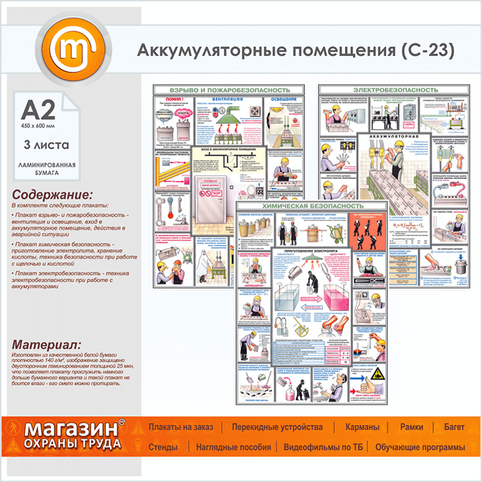 Плакаты «Аккумуляторные помещения» (С-23, ламинированная бумага, А2, 3 листа) в Нижнекамске купить
