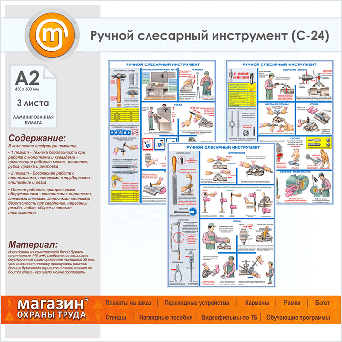 Плакаты «Ручной слесарный инструмент» (С-24, ламинированная бумага, А2, 3 листа) в Нижнекамске купить