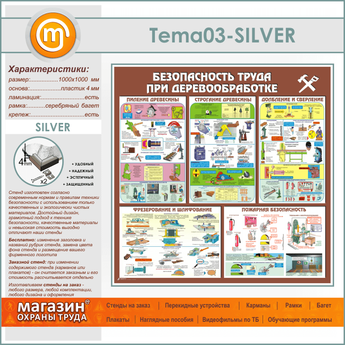 Стенд «Безопасность труда при деревообработке» (TM-03-SILVER) в Нижнекамске купить