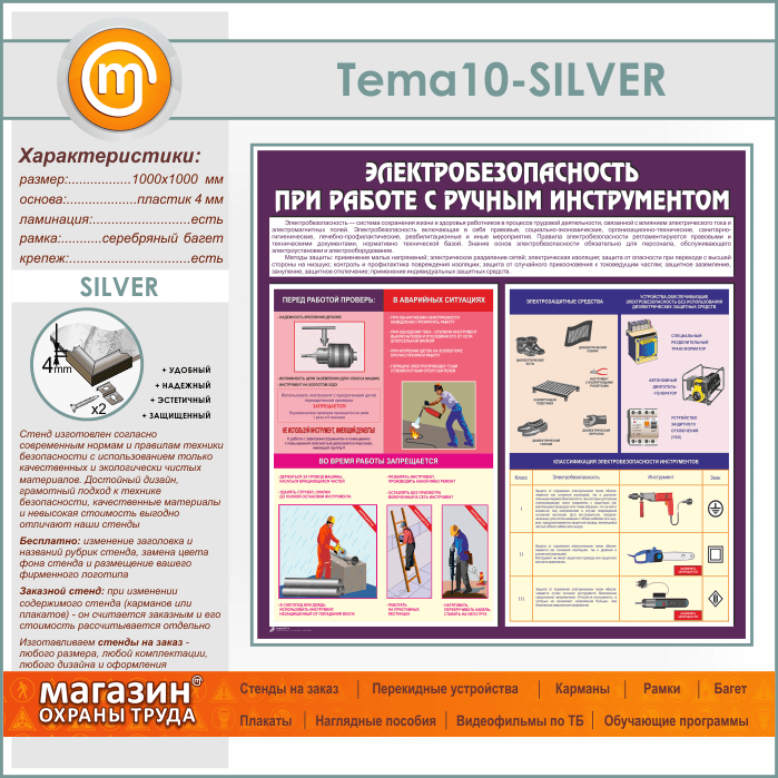 Стенд «Электробезопасность при работе с ручным инструментом» (TM-10-SILVER) в Нижнекамске купить