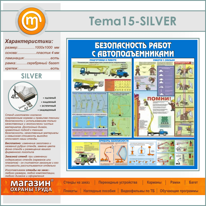Стенд «Безопасность работ с автоподъемниками» (TM-15-SILVER) в Нижнекамске купить