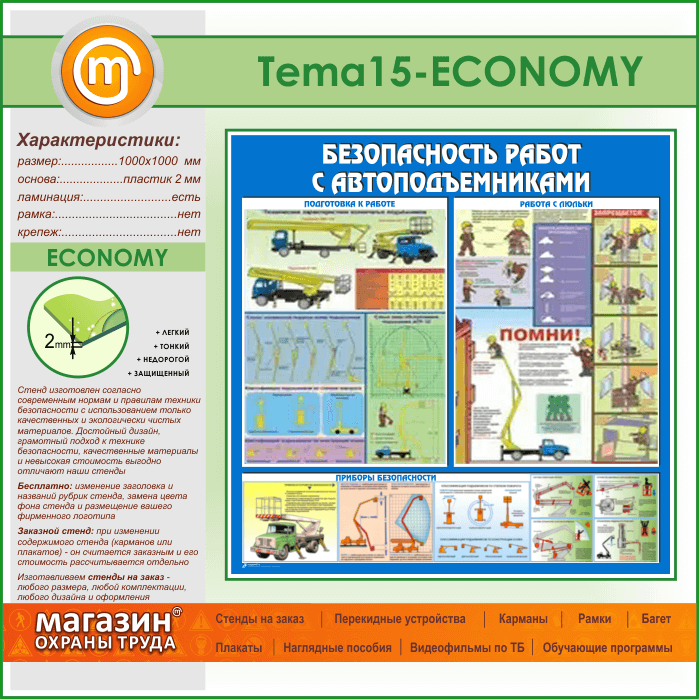 Стенд «Безопасность работ с автоподъемниками» (TM-15-ECONOMY) в Нижнекамске купить