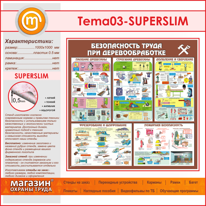 Стенд «Безопасность труда при деревообработке» (TM-03-SUPERSLIM) в Нижнекамске купить