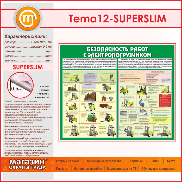 Стенд «Безопасность работ с электропогрузчиком» (TM-12-SUPERSLIM) в Нижнекамске купить