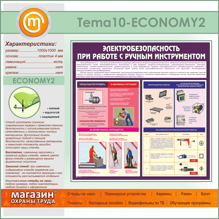 Стенд «Электробезопасность при работе с ручным инструментом» (TM-10-ECONOMY2) в Нижнекамске купить