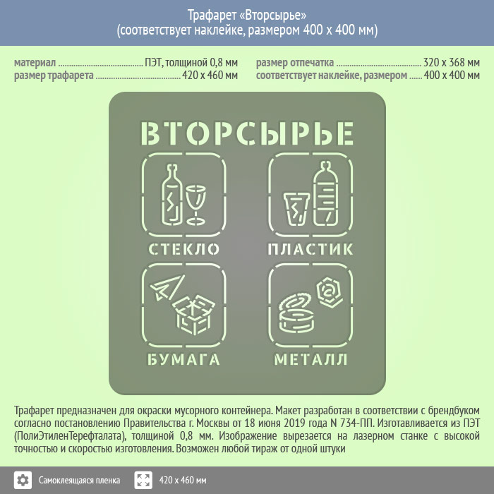 Трафарет «Вторсырье» (соответствует наклейке, размером 400х400 мм) в Нижнекамске купить