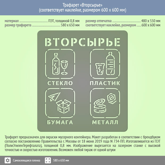 Трафарет «Вторсырье» (соответствует наклейке, размером 600х600 мм) в Нижнекамске купить