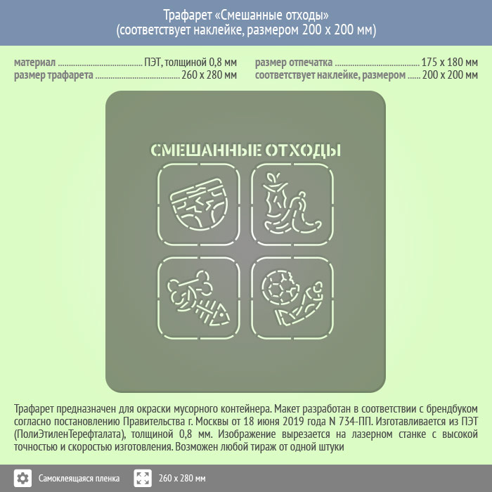 Трафарет «Смешанные отходы» (соответствует наклейке, размером 200х200 мм) в Нижнекамске купить