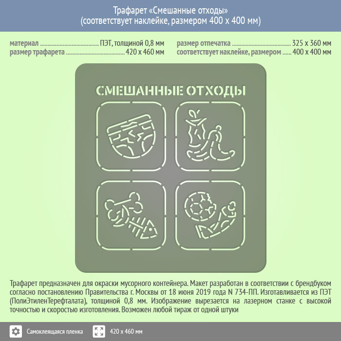 Трафарет «Смешанные отходы» (соответствует наклейке, размером 400х400 мм) в Нижнекамске купить