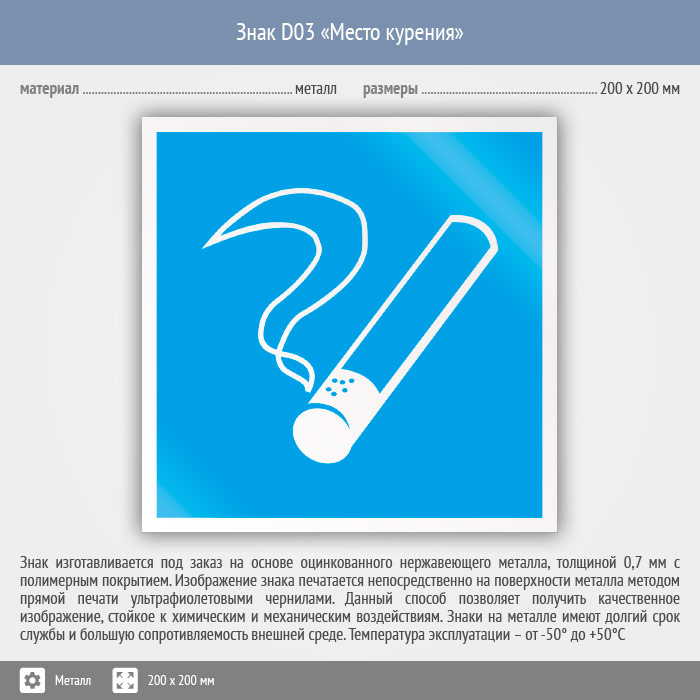 Знак D03 «Место курения» (металл, 200х200 мм) в Нижнекамске купить
