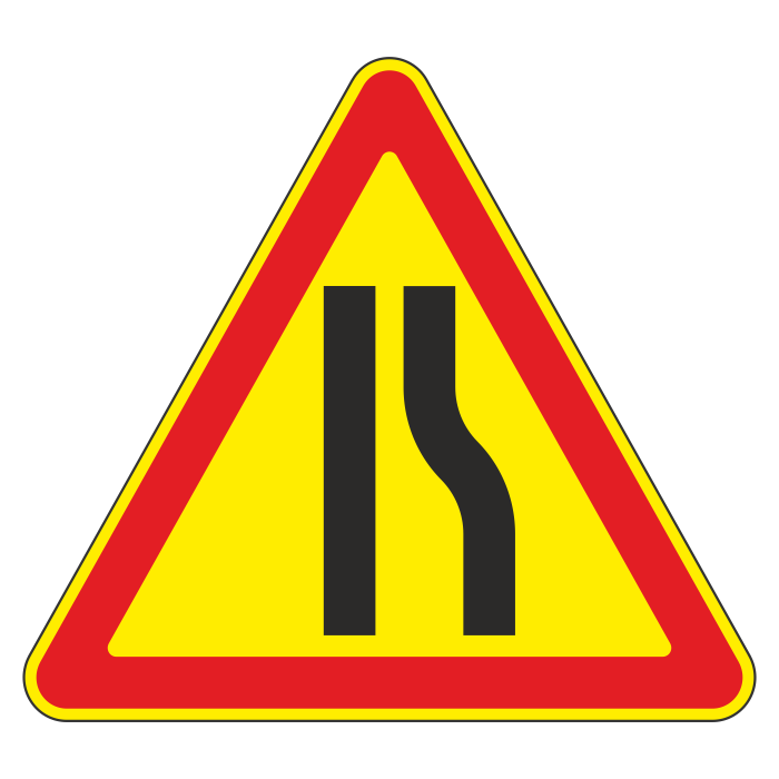 Дорожный знак 1.20.2 «Сужение дороги» (временный) (металл 0,8 мм, II типоразмер: сторона 900 мм, С/О пленка: тип А коммерческая) в Нижнекамске купить