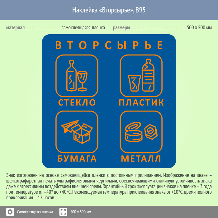 Наклейка на бак «Вторсырьё», B95 (пленка, 500х500 мм) в Нижнекамске купить