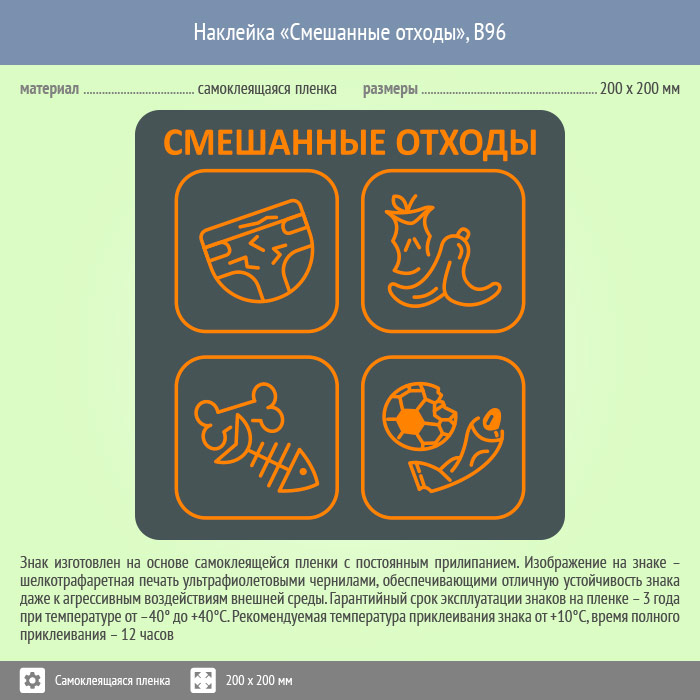 Наклейка на бак «Смешанные отходы», B96 (пленка, 200х200 мм) в Нижнекамске купить