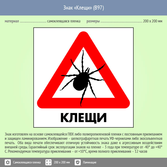 Знак «Клещи», B97 (пленка c ламинированием, 300х300 мм) в Нижнекамске купить