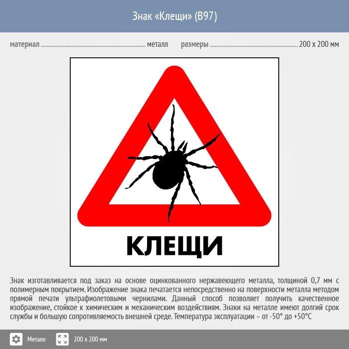 Знак «Клещи», B97 (металл, 300х300 мм) в Нижнекамске купить