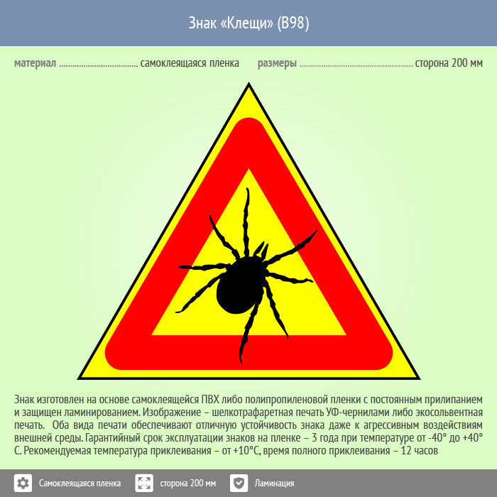 Знак «Клещи», B98 (пленка c ламинированием, сторона 300 мм) в Нижнекамске купить