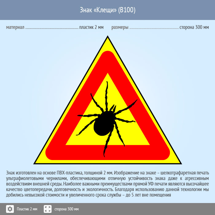 Знак «Опасно! Клещи», B100 (пластик, сторона 200 мм) в Нижнекамске купить