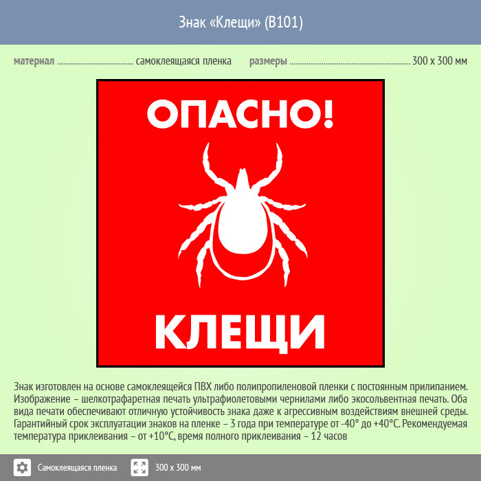 Знак «Опасно! Клещи», B101 (пленка, 300х300 мм) в Нижнекамске купить