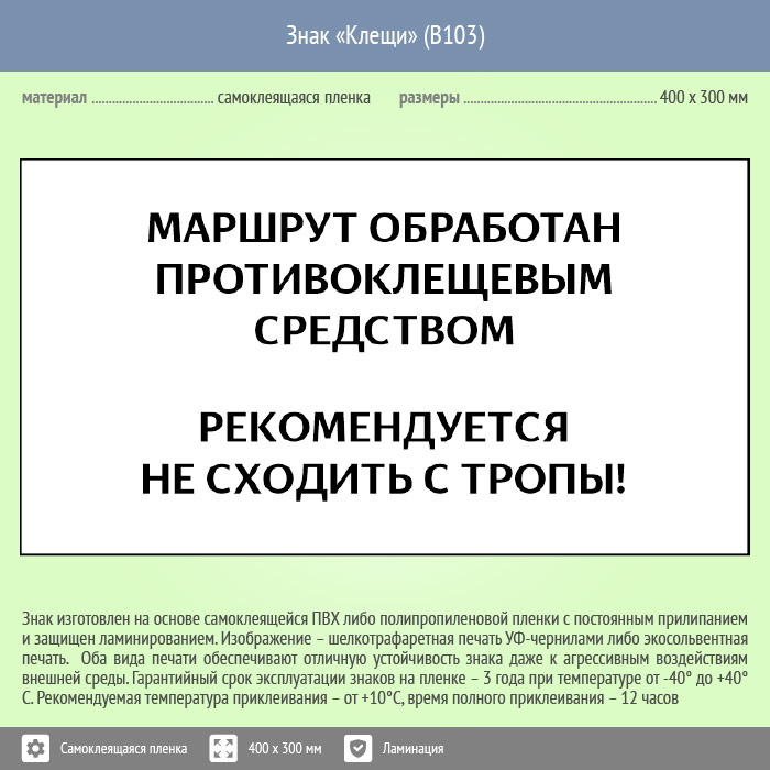 Знак «Клещи», B103 (пленка c ламинированием, 300х200 мм) в Нижнекамске купить
