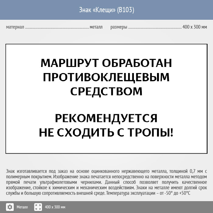 Знак «Клещи», B103 (металл, 300х200 мм) в Нижнекамске купить