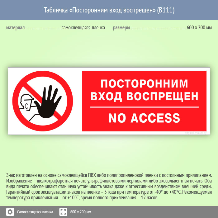 Табличка «Посторонним вход воспрещен», B111 (пленка, 600х200 мм) в Нижнекамске купить