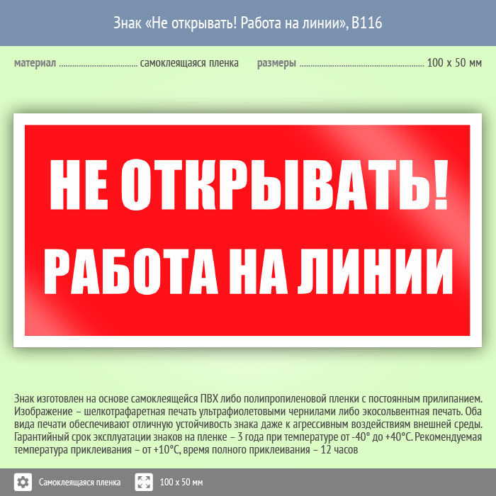 Знак «Не открывать! Работа на линии», B116 (пленка, 100х50 мм) в Нижнекамске купить