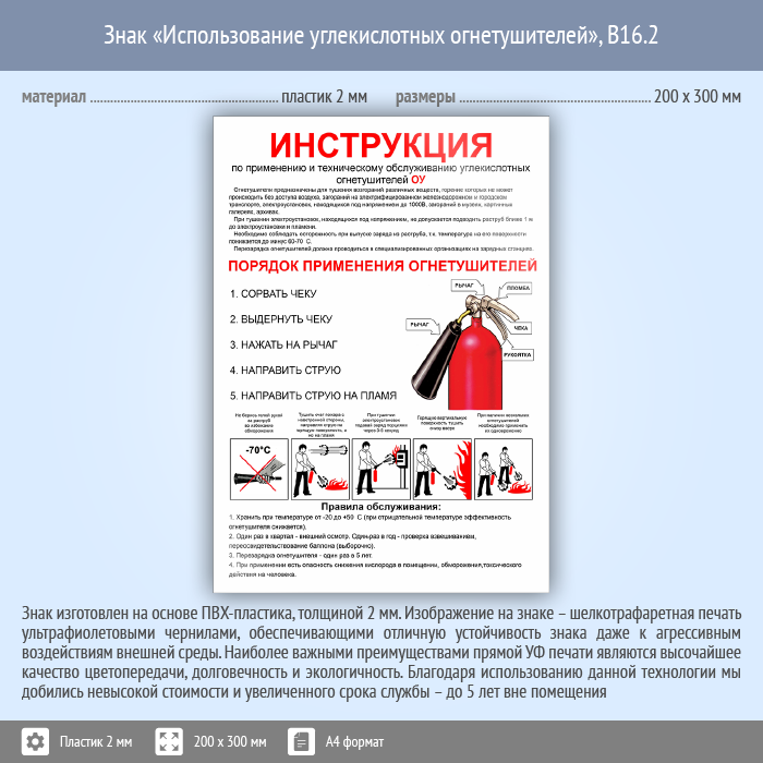 Знак «Использование углекислотных огнетушителей», B16.2 (пластик, 200х300 мм) в Нижнекамске купить