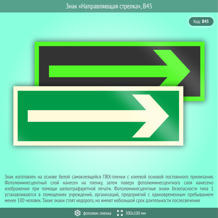 Знак «Направляющая стрелка», B45 (фотолюминесцентная пленка, 300х100 мм) в Нижнекамске купить