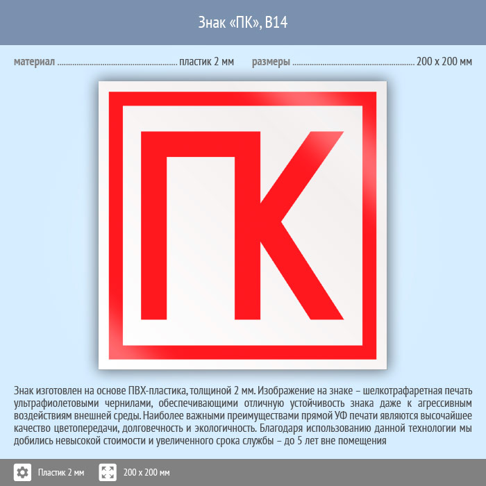 Знак «ПК», B14 (пластик, 200х200 мм) в Нижнекамске купить