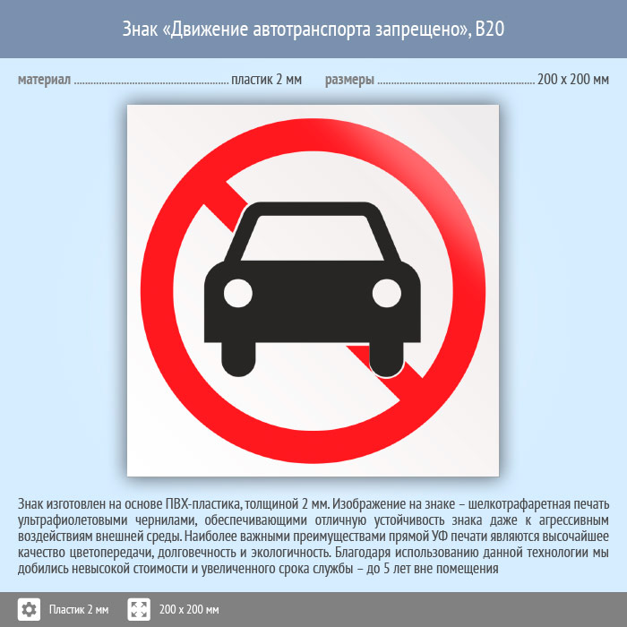 Знак «Движение автотранспорта запрещено», B20 (пластик, 200х200 мм) в Нижнекамске купить