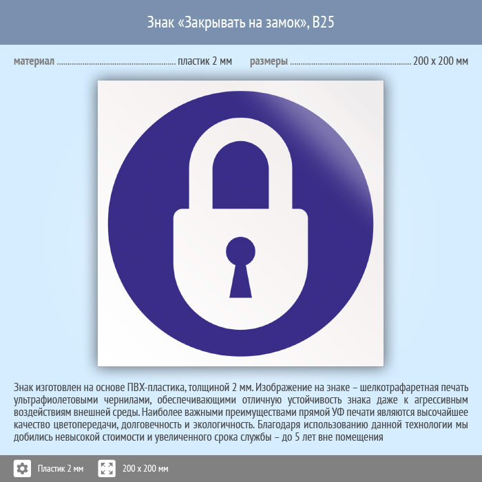 Знак «Закрывать на замок», B25 (пластик, 200х200 мм) в Нижнекамске купить