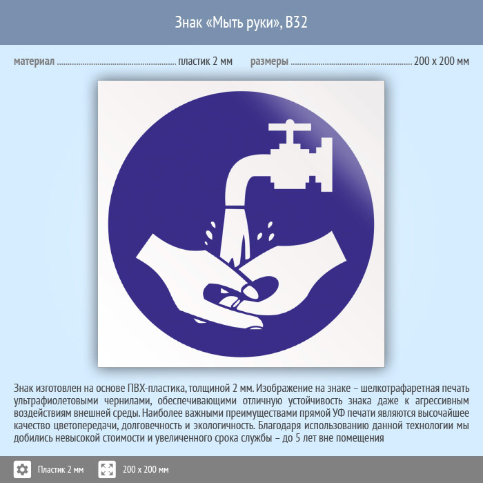 Знак «Мыть руки», B32 (пластик, 200х200 мм) в Нижнекамске купить
