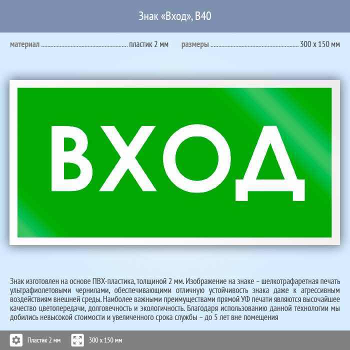 Знак «Вход», B40 (пластик, 300х150 мм) в Нижнекамске купить