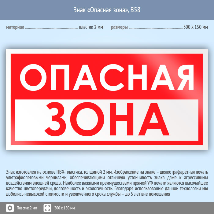 Знак «Опасная зона», B58 (пластик, 300х150 мм) в Нижнекамске купить