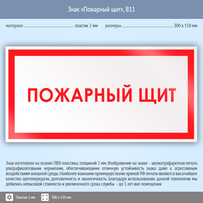 Знак «Пожарный щит», B11 (пластик, 300х150 мм) в Нижнекамске купить