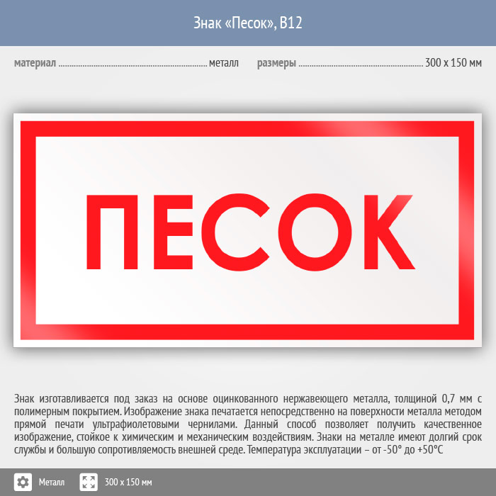 Знак «Песок», B12 (металл, 300х150 мм) в Нижнекамске купить