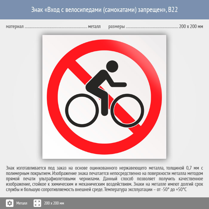 Знак «Вход с велосипедами (самокатами) запрещен», B22 (металл, 200х200 мм) в Нижнекамске купить