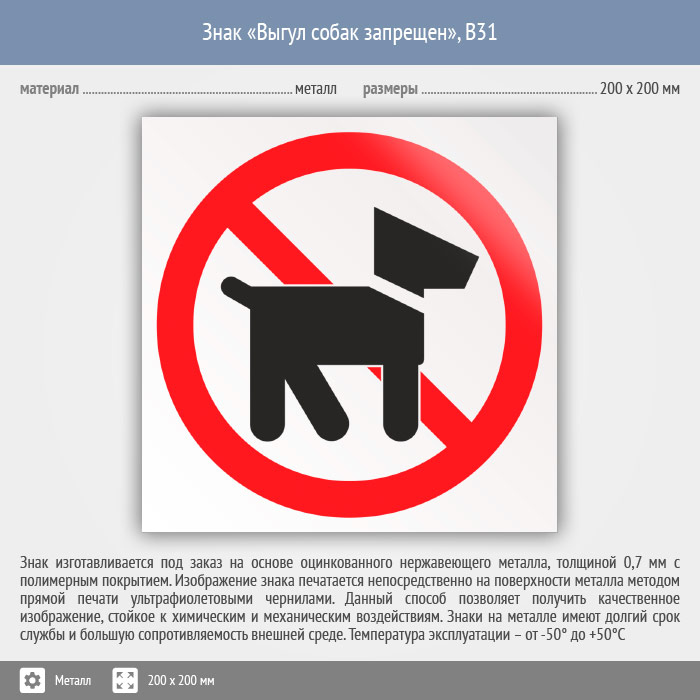 Знак «Выгул собак запрещен», B31 (металл, 200х200 мм) в Нижнекамске купить