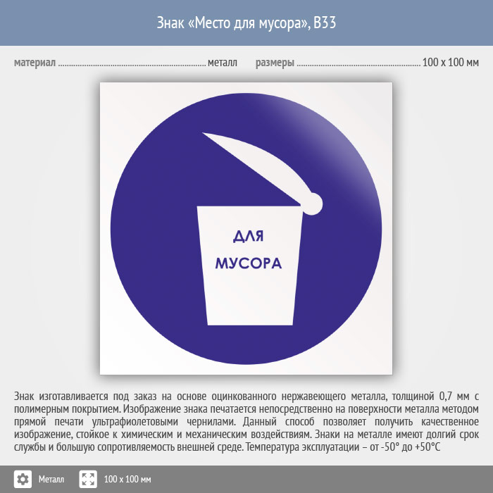 Знак «Место для мусора», B33 (металл, 100х100 мм) в Нижнекамске купить
