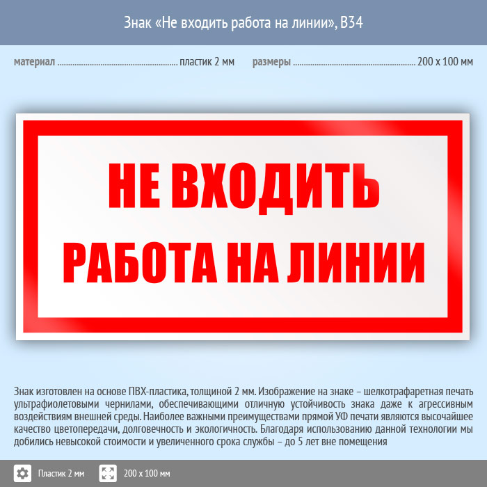 Знак «Не входить работа на линии», B34 (пластик, 200х100 мм) в Нижнекамске купить