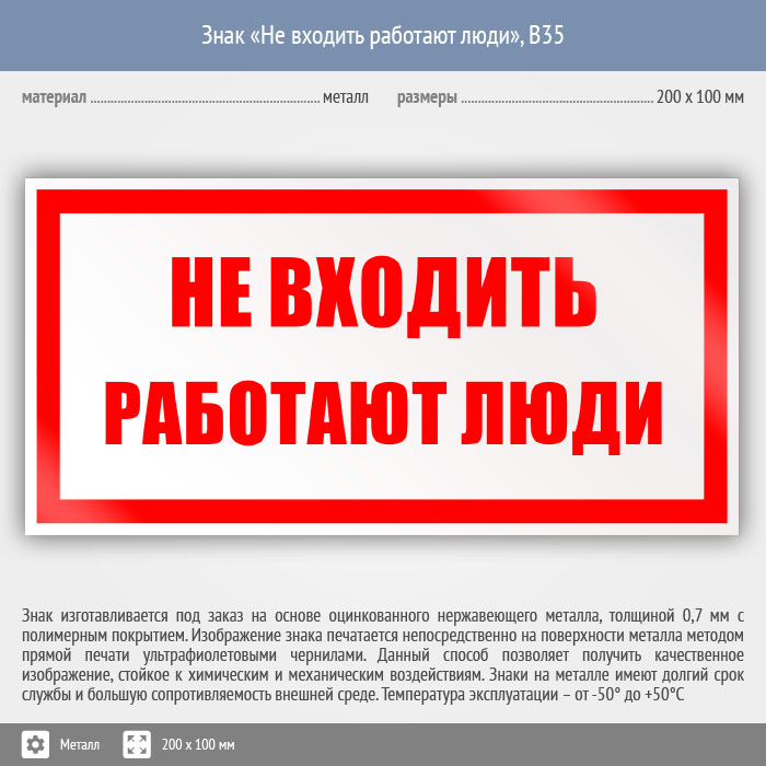 Знак «Не входить работают люди», B35 (металл, 200х100 мм) в Нижнекамске купить