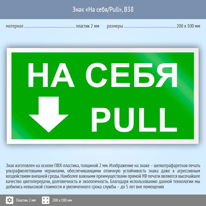 Знак «На себя/Pull», B38 (пластик, 200х100 мм) в Нижнекамске купить