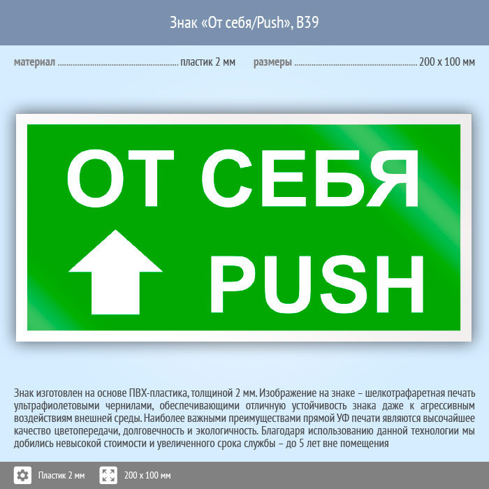Знак «От себя/Push», B39 (пластик, 200х100 мм) в Нижнекамске купить