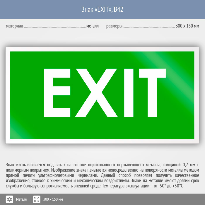 Знак «EXIT», B42 (металл, 300х150 мм) в Нижнекамске купить