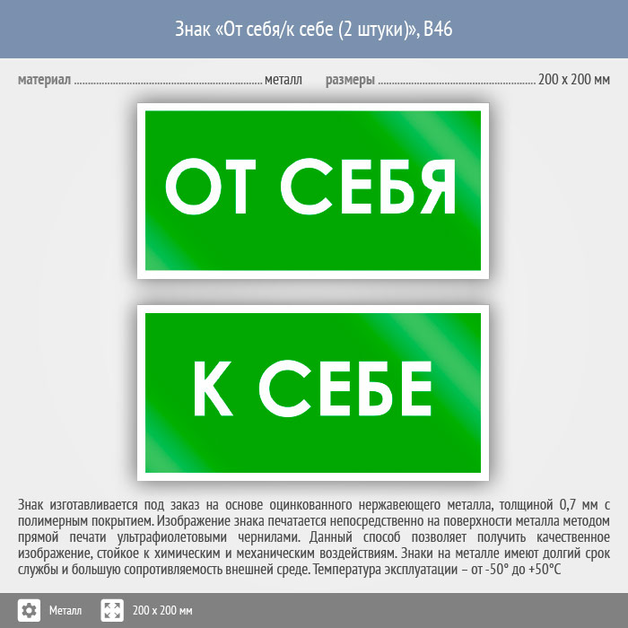 Знак «От себя/к себе», B46 (2 штуки, металл, 200х100 мм) в Нижнекамске купить