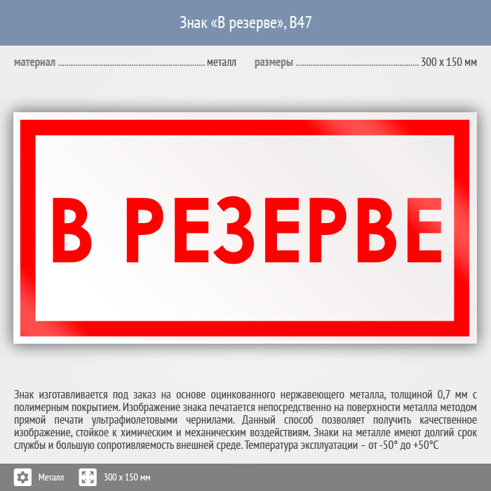 Знак «В резерве», B47 (металл, 300х150 мм) в Нижнекамске купить