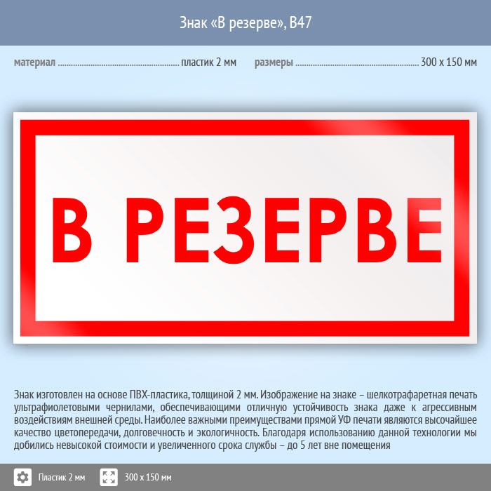 Знак «В резерве», B47 (пластик, 300х150 мм) в Нижнекамске купить